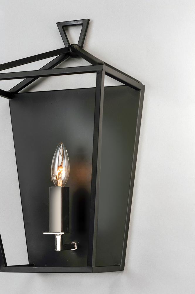Open air frames finished in Black with Polished Nickel accents makes a simplistic yet dramatic statement for any interior design. Larger scale pieces fill up space without breaking the budget.