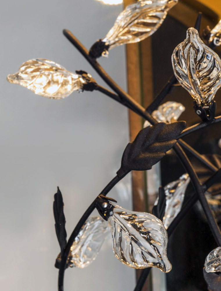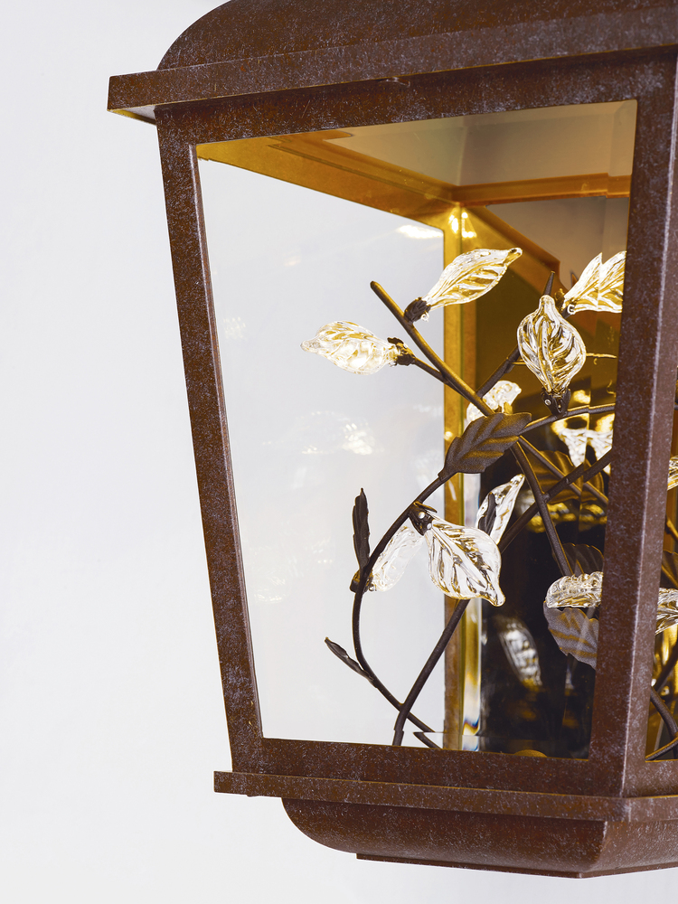 A Sculpture Of Metal And Clear Crystal Leaves Come To Life While Illuminated From Above With A Powerful LED Light Source. The Cast Aluminum Frame Painted In Our Popular Adobe Finish Compliments The Theme And The Polished Back Plate Gives The Sculpture A Unique Dimension.