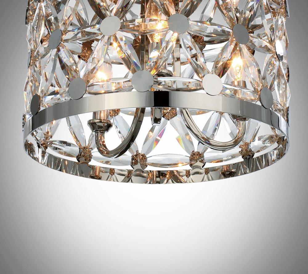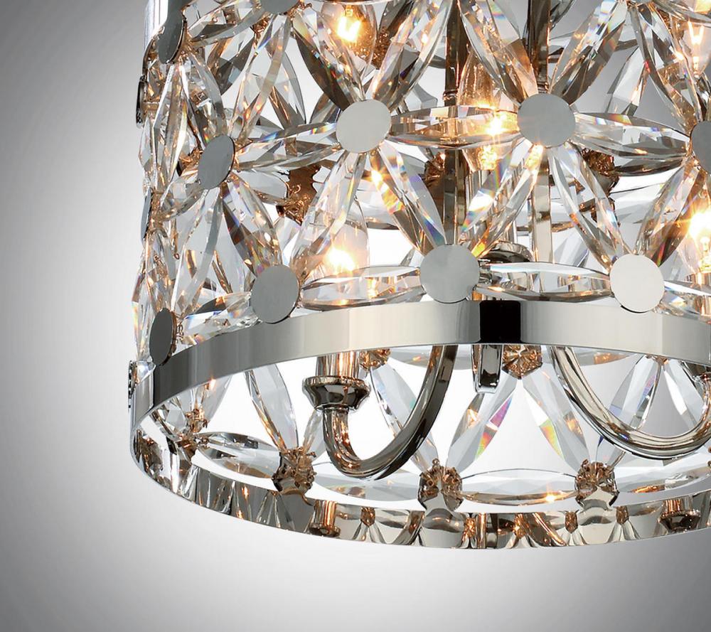 Petals of Beveled Crystal create a brilliant display housed in a Polished Nickel frame. This elegant collection spans many design genres from modern to traditional and will enhance a wide variety of room decor.