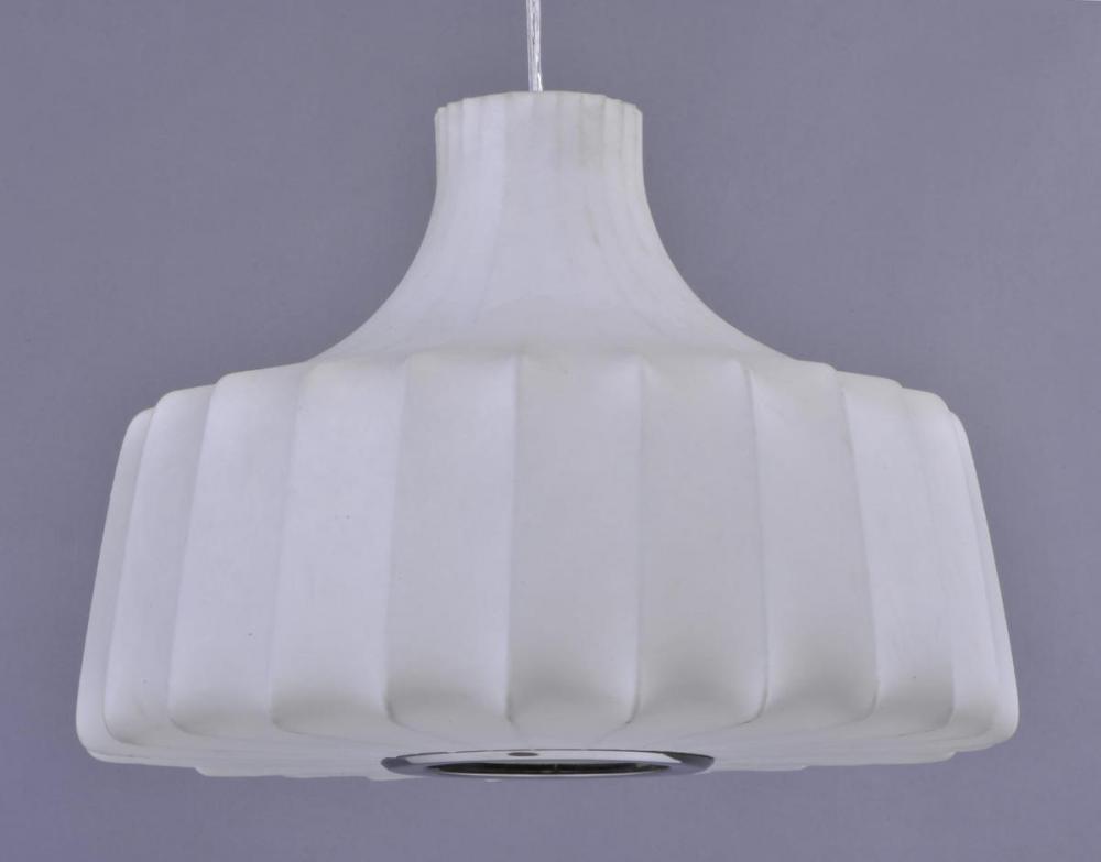 A web of fiberglass Is bonded together with latex and stretched over steel frames, creating a 5O's contemporary design. When illuminated, the fiber shows through the soft fabric and adds texture to this unique look.