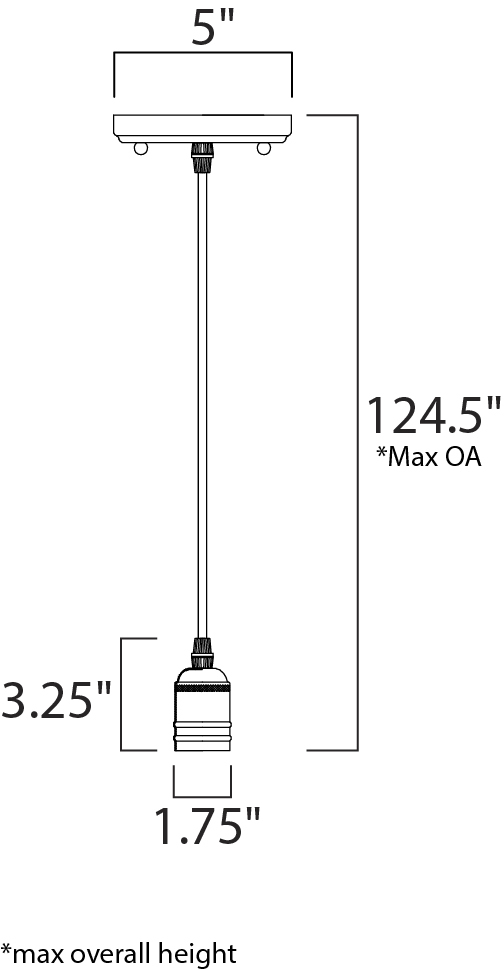 Cords of Black fabric support metal sockets finished in a natural Antique Brass allow you to create unique and fun lighting. All except the single pendant are supplied with hangers that attach to the ceiling to allow you to swag each socket. There are a number of optional bulbs to choose from.