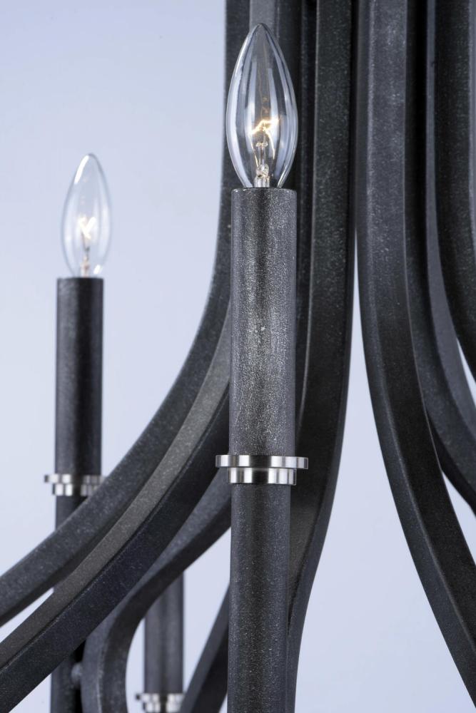 A bold statement of looped arms finished in Iron Ore and trimmed with Satin Nickel accents will be a welcome addition to most any home decor. Add optional Ferrous shades for a tailored look.