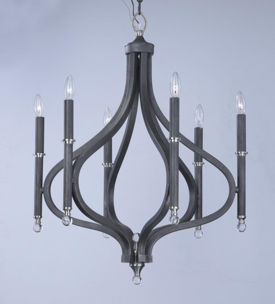 A bold statement of looped arms finished in Iron Ore and trimmed with Satin Nickel accents will be a welcome addition to most any home decor. Add optional Ferrous shades for a tailored look.