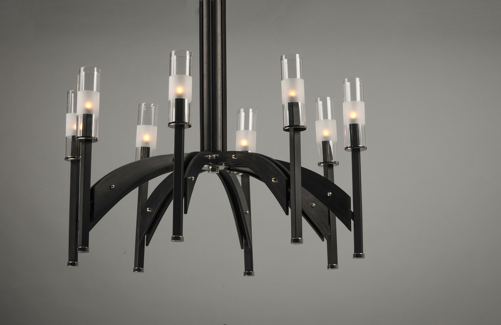 A modern classic created using mixed medium in complimentary finishes that come together to compose a beautiful art form. Available in your choice of Wenge wood with Black and Polished Nickel accents or Antique Pecan wood with Bronze and Satin Brass. Tall