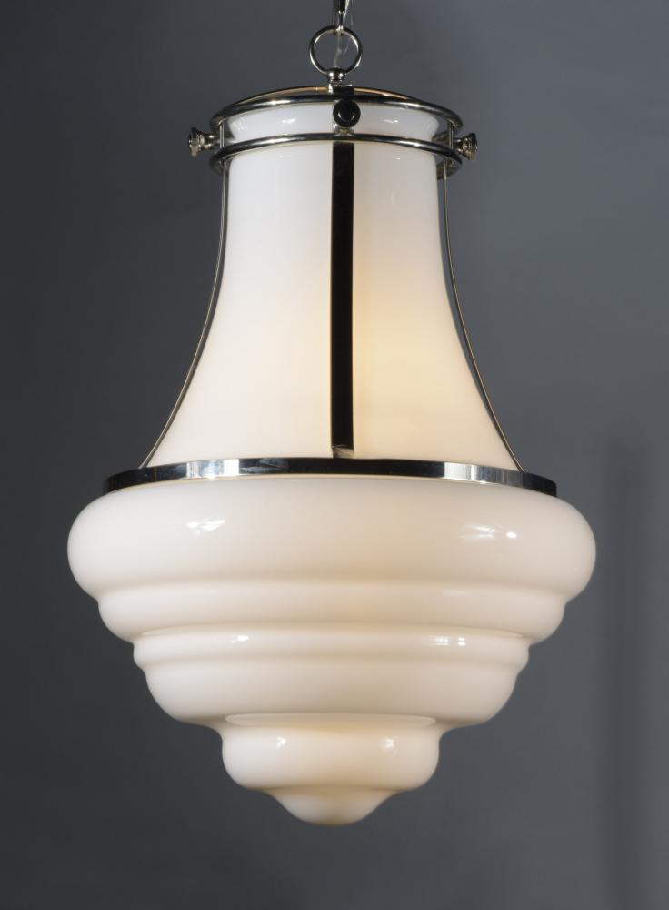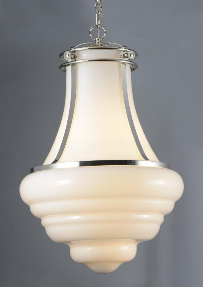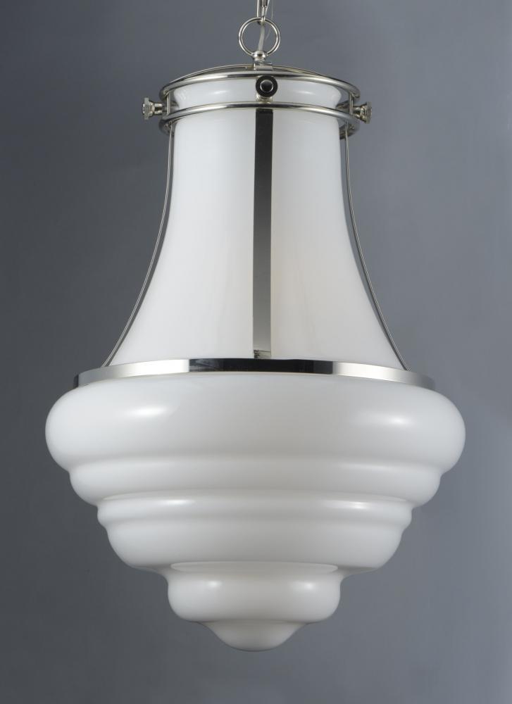 This collection of pendants, inspired by lighting reminiscent of the past, are updated to fit into today's home decor. With a wide variety of size, finish, and technology there is something for everyone. Hand blown Clear and White cased opal glass wi