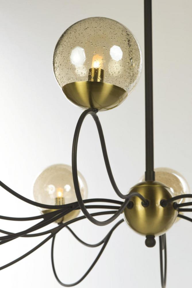 Small dimension metal tubing is artfully bent to loop back to the origin that creates an_x000D_ unique and delicate arm. Supported by this graceful arm is a round bubble glass shade. Available in your choice of Textured Black with Polished Nickel acce