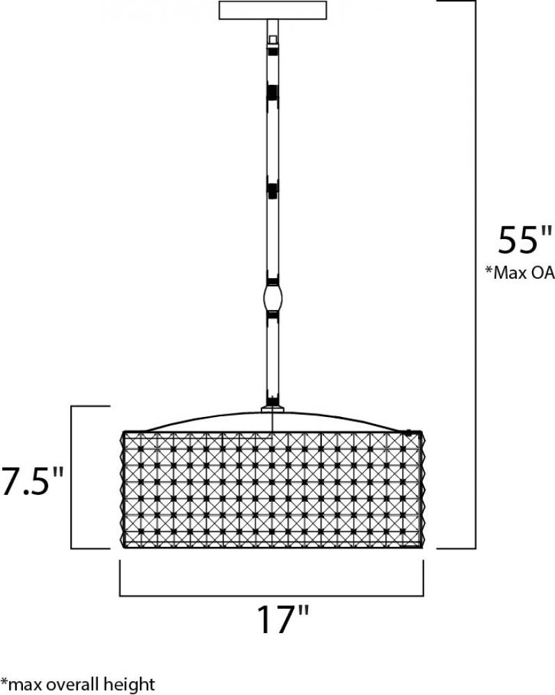 Drums of square Beveled Crystal are connected together as a vision of beauty. Crystal strands line the inside of the fixture for added shimmer. Polished Chrome hardware adds a reflective quality to the overall look.