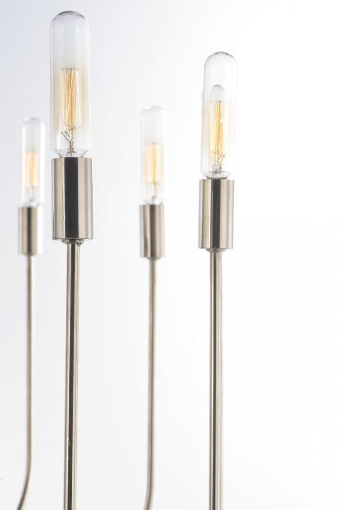 Classical styling is updated in the Willsburg chandelier. Stripped of any adornment, the thin tubes of metal are finished in Polished Nickel. Pair the fixture with tubular candelabra bulbs to complete the simple, classic styling of this fixture.